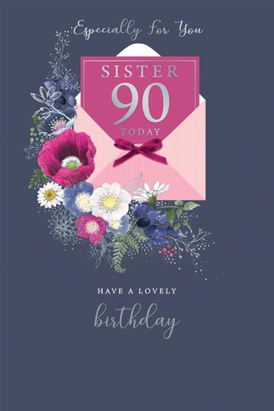 Especially For You Sister 90 Today 90th Birthday Poppy Daisy Flowers Silver Foil Greeting Card