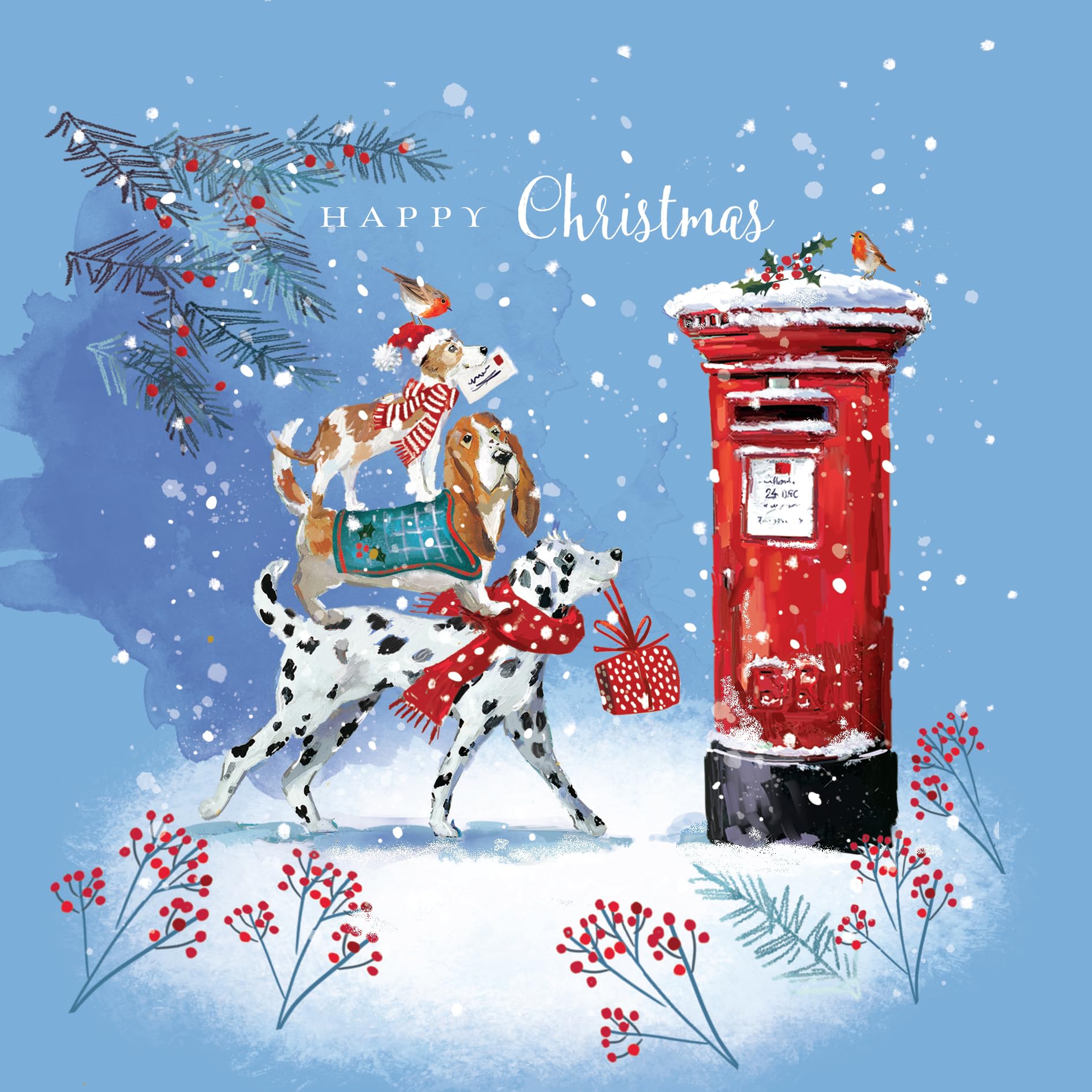 Festive Pet Dogs at Xmas - Deluxe Box of 12 Christmas & New Year Cards - 135 x 135mm (5.5x5.5in) - Gloss Finish on Premium Board by Ling Design