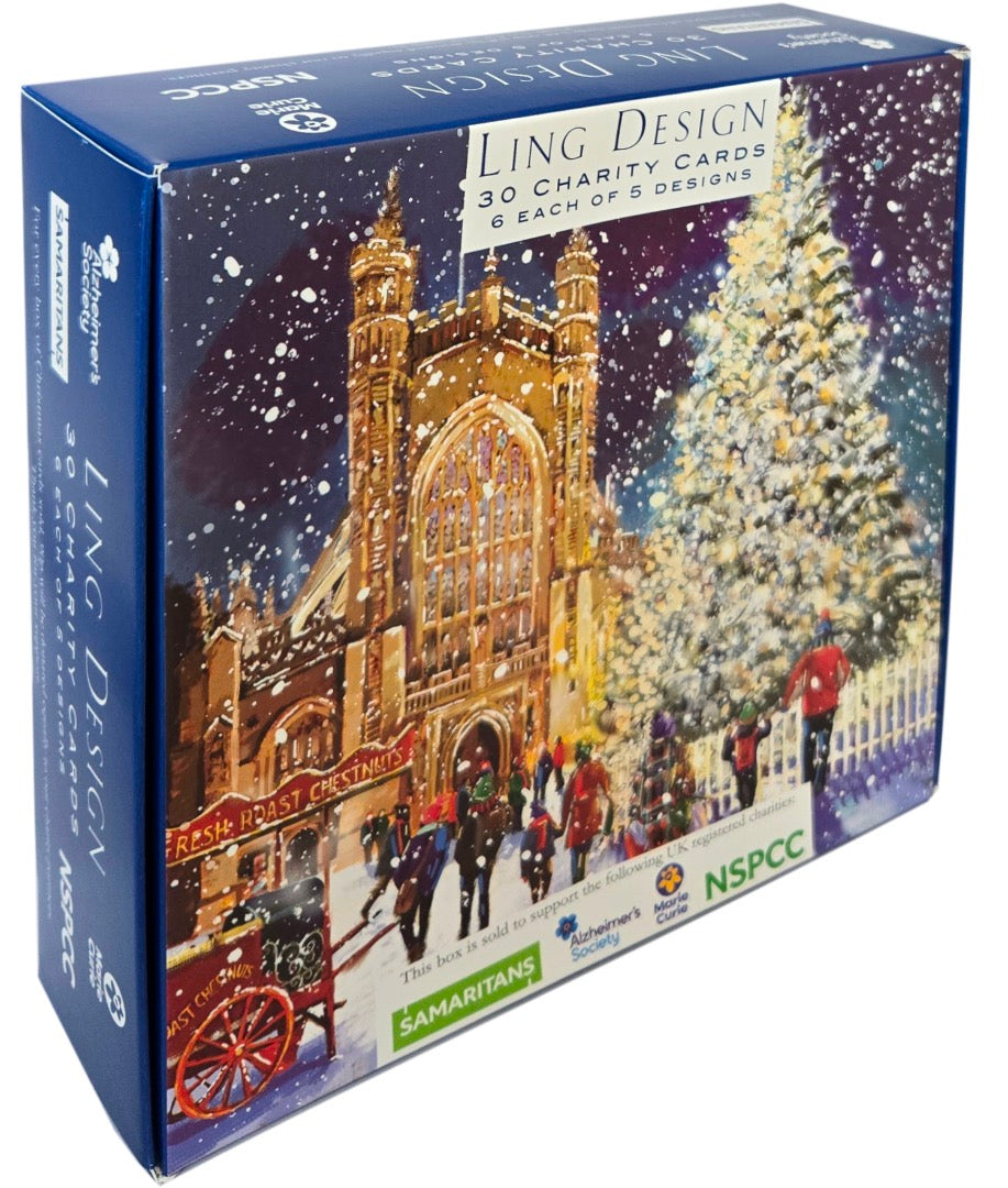 - CHARITY CARDS: Pack of 30 Premium Christmas Greeting Cards with Festive Artwork on Premium Gloss Board - In Support of UK Registered Charities: Samaritans - Alzheimer's Society - Marie Curie - NSPCC. For every box of Christmas cards sold, 90p will be donated equally to our charity partners. Thank you for your support.