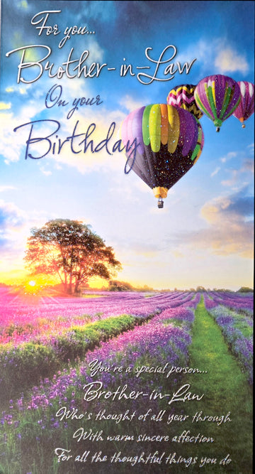 For You Brother-in-Law On Your Birthday Glitter Greeting Card - Colorfully Printed Inside - Supplied with White Envelope