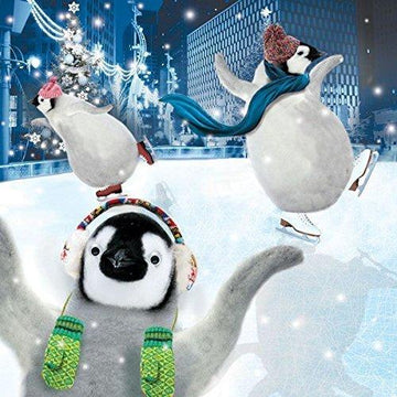 Funny Skating Penguins Dancing on Ice Goggly 3D Moving Eyes Christmas & New Year Greeting Card
