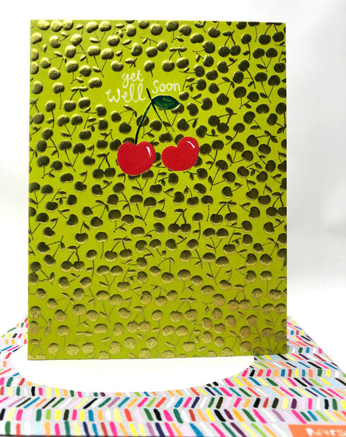 Get Well Soon Cherries Blank Greeting Card - Emboss & Foil - Pixie by Paper Salad (PX1910)
