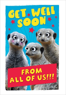 Get Well Soon From All Of Us Meerkats Long Greeting Card