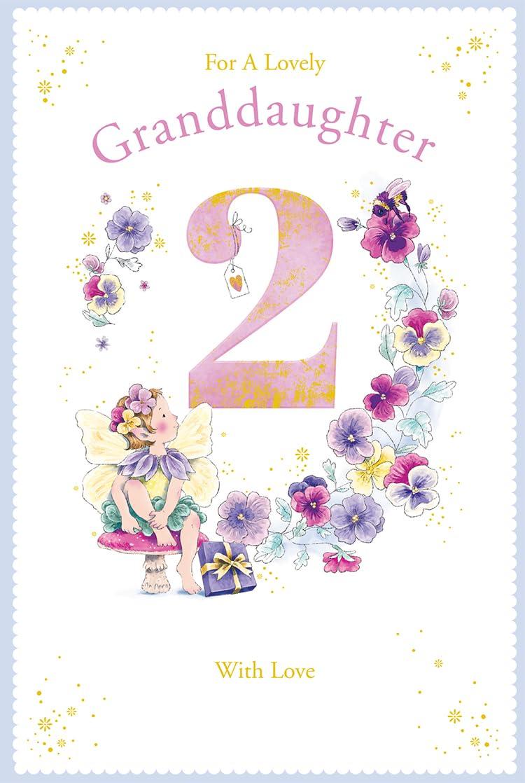 Granddaughter 2nd Birthday Card Age 2 Pansy Fairy 9''x6'' with Lovely Verse Inside