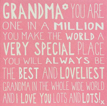 Grandma You Are One In A Million Birthday Card with Love Glitter Sparkle Verse