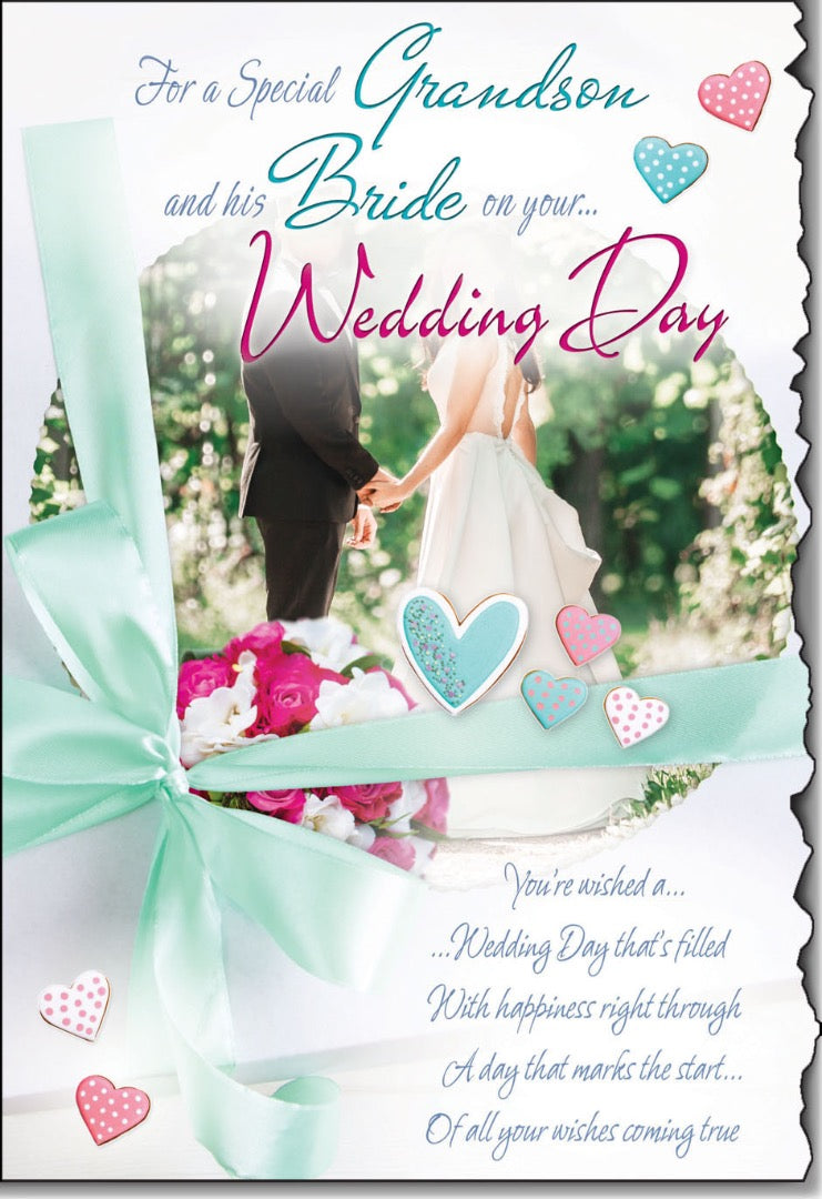 Grandson & Bride Wedding Day Congratulations - Die Cut Card with Loving Words Verses - Full Colour Insert by Cardigan Cards