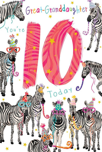 Great Granddaughter 10th Birthday Card Age 10 Zebras Printed Insert Lovely Verse