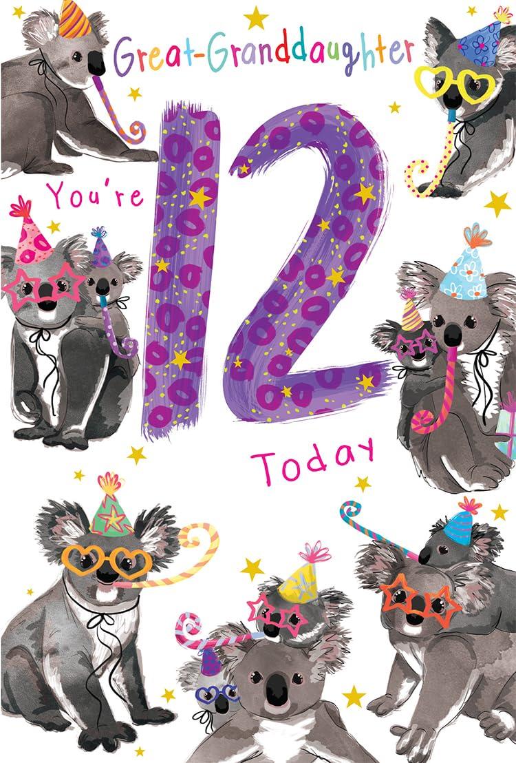 Great Granddaughter 12th Birthday Card Age 12 Koala Printed Insert Lovely Verse