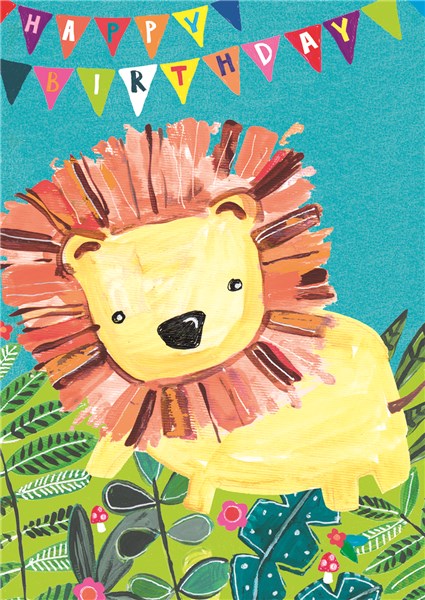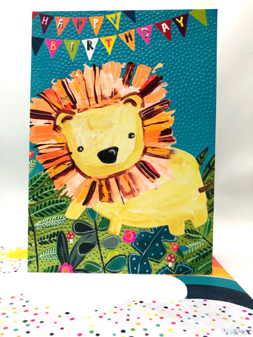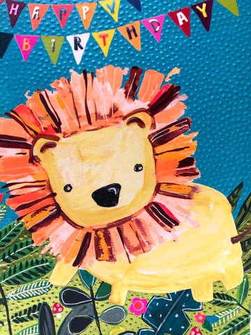 Happy Birthday Lion - Fun Colourful Neon Children's Blank Greeting Card - Emboss & Foil - Hoopla by Paper Salad (HL1922)