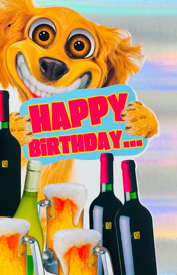 Happy Birthdays From One Party Animal To Another Funny Humour Card - Dog Drinks Beer