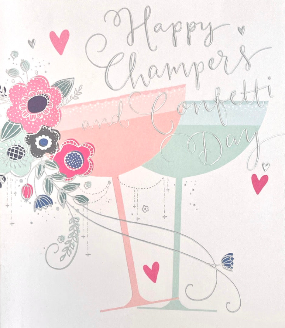 Happy Champers and Confetti Day Champagne Floral Congratulations Occasions Card
