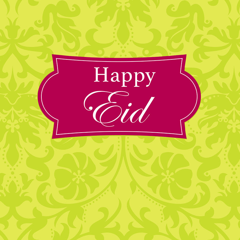 Happy Eid Green and Fushia Pink Glitter finish Greeting Card