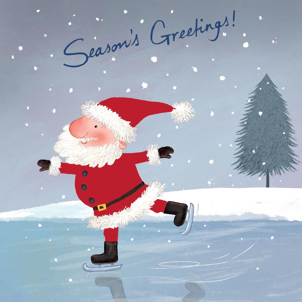 Jolly Santa Claus Skating on Lake Red Foil Charity Seasons Greetings Cards 5 Pack