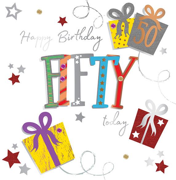 Large Luxury Handmade 50th FIFTY Unisex Birthday Card by Talking Pictures