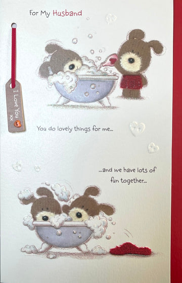 Lots of Woof Cut Puppy Dog Husband Valentine's Day X Large Premium Card - You Do Lovely Thing For Me.. Glitter & Emboss Finish