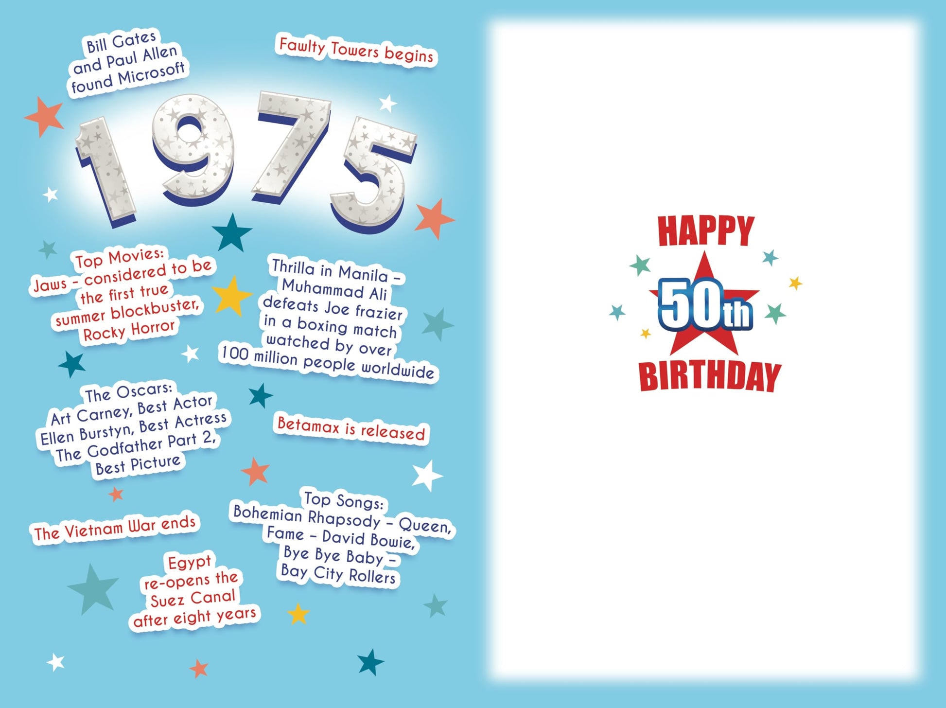 Male Milestone 50th Birthday Card For Him in 2025 with Interest Facts from 1975