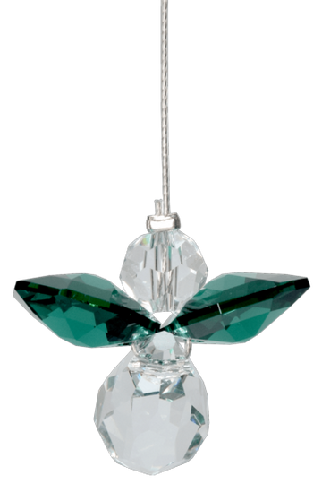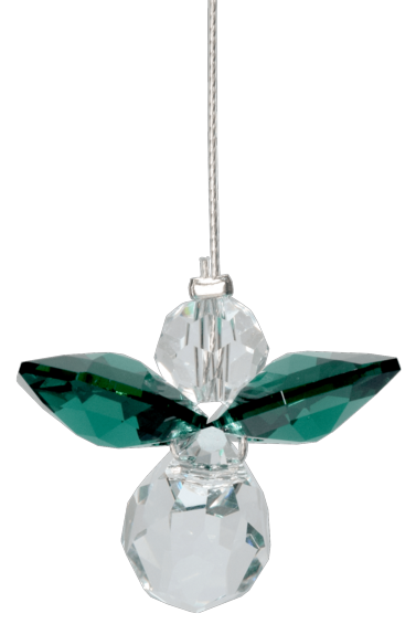 May Birthstone Emerald Crystal Guardian Angel Hanging Charm with Organza Bag