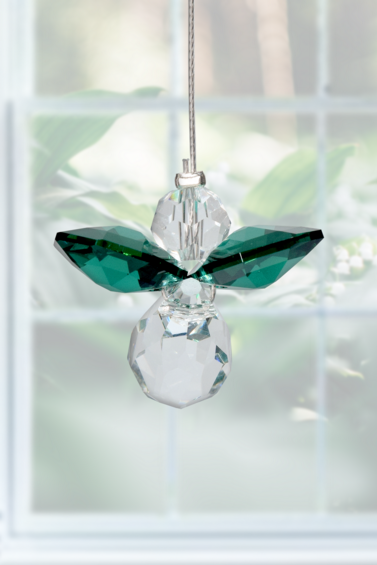 Immensely popular Classic Crystal Guardian Angel in a Emerald Colour-way. Handcrafted in the UK
