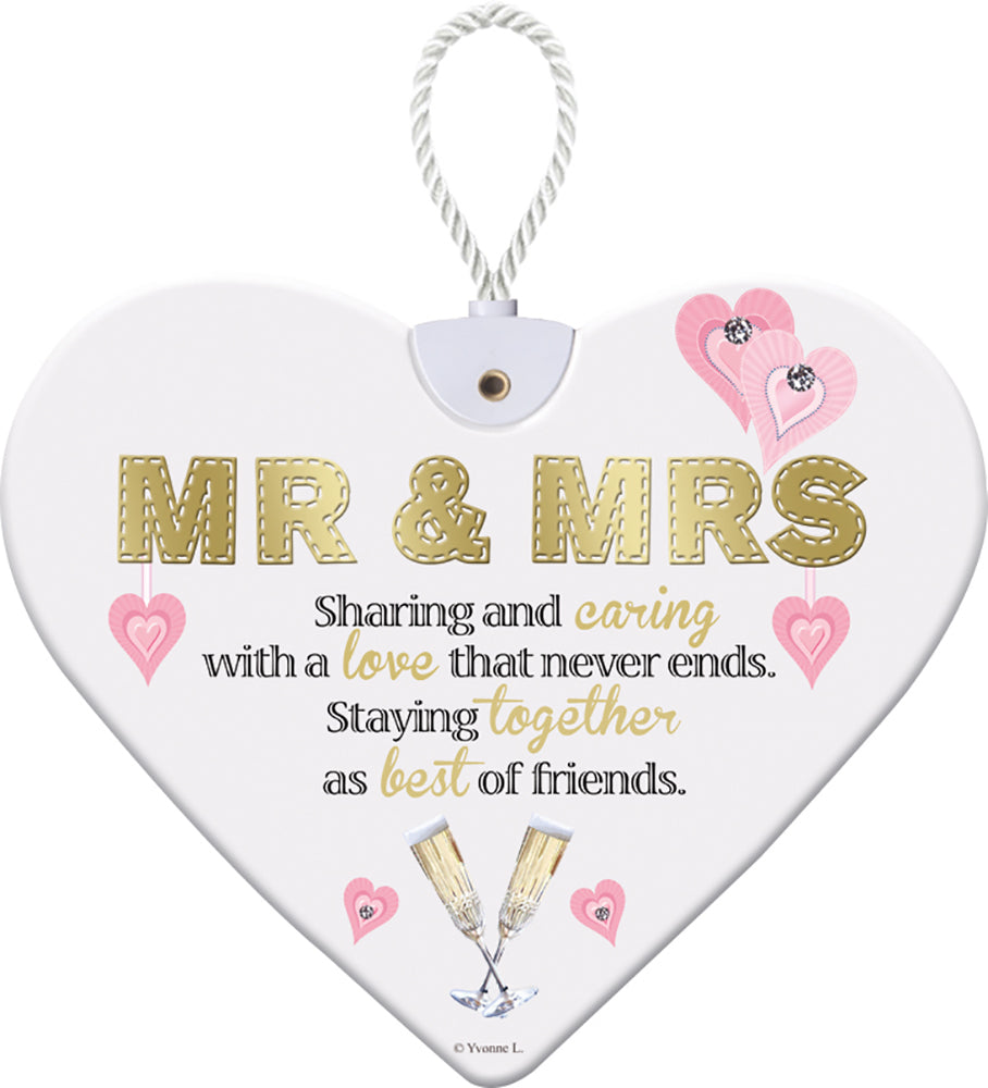 A beautiful, sentimental handcrafted 'Mr & Mrs' heart shaped plaque from Sensations.
