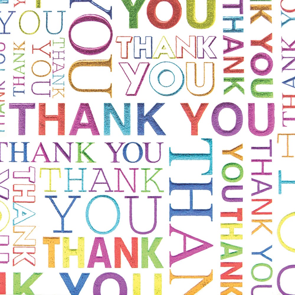 Multi Coloured Thank You Notecards Foil finish Pack of 5 Cards & Envelopes by Tracks Publishing