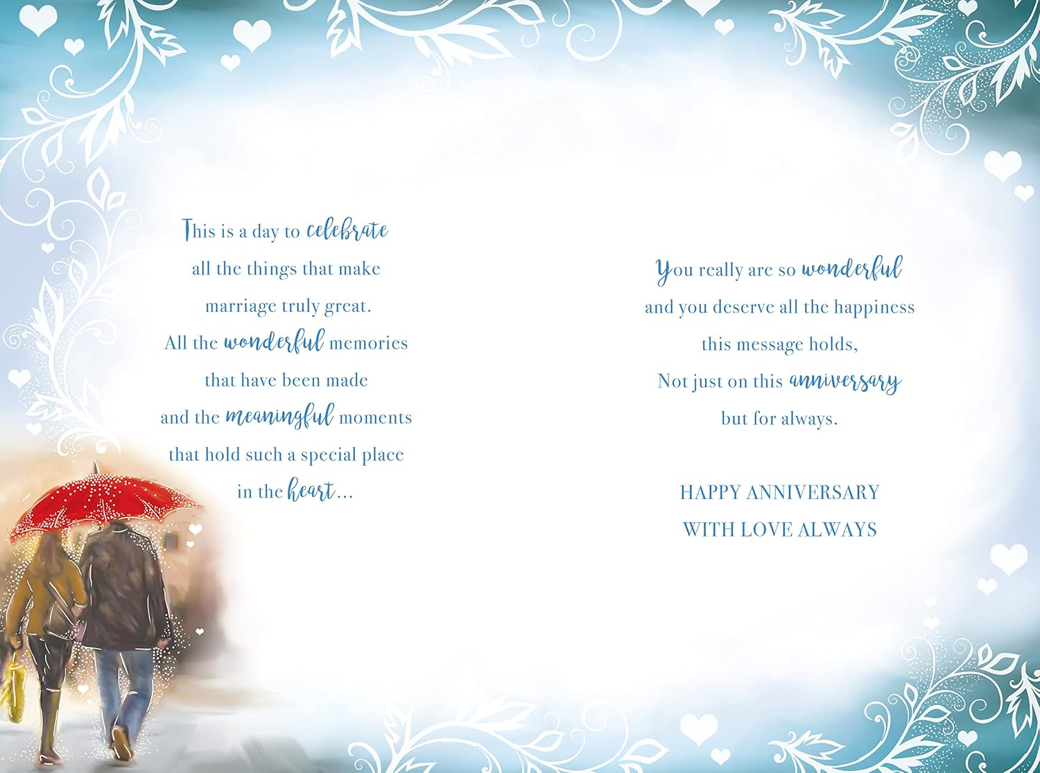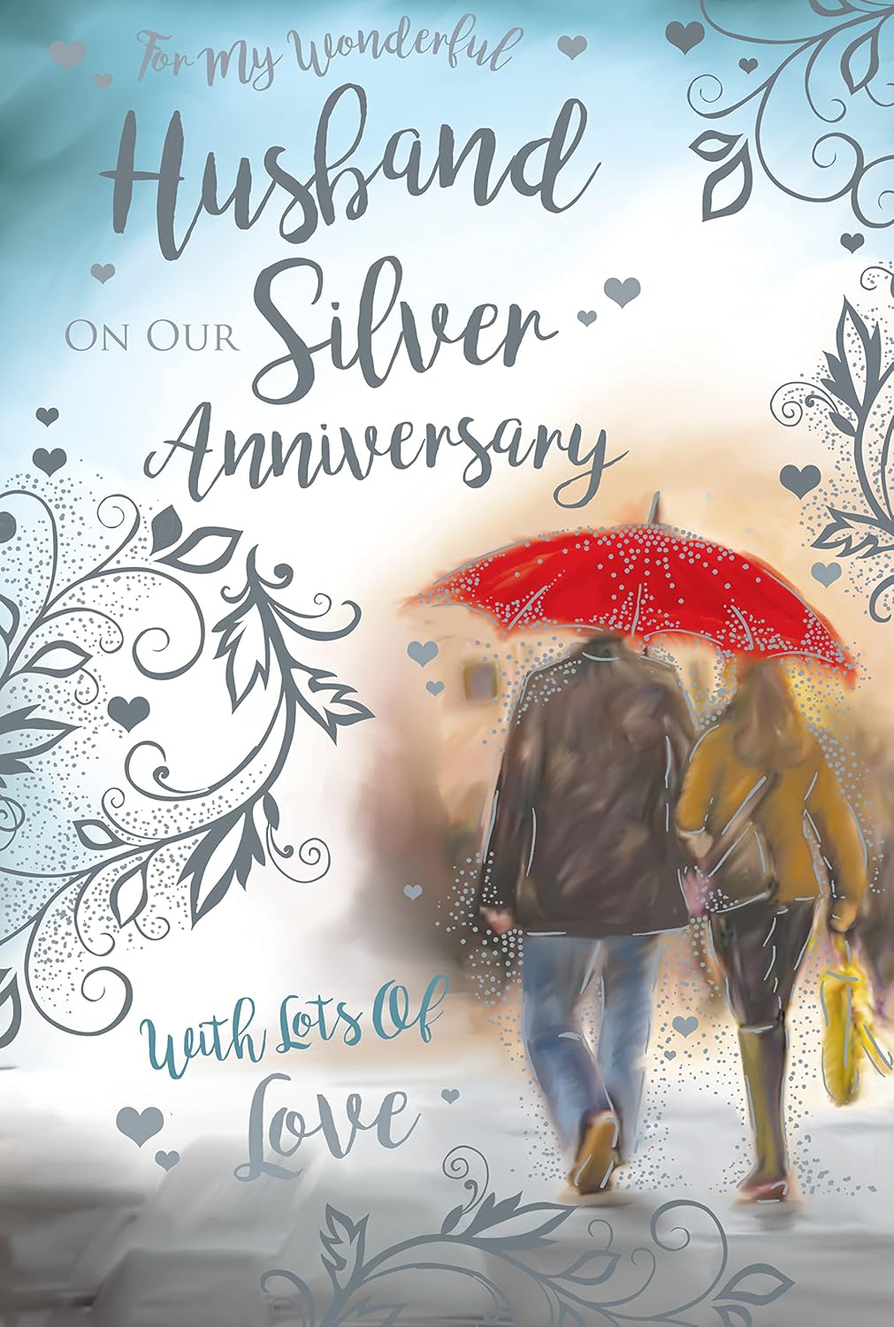 My Wonderful Husband on Our Silver Anniversary 25th Romantic Walk in Rain Under Umbrella Foil Art Greeting Card