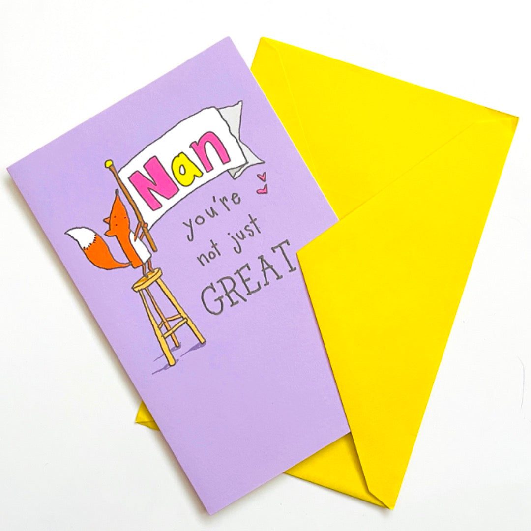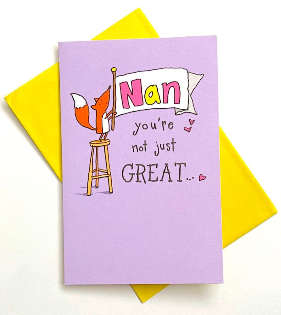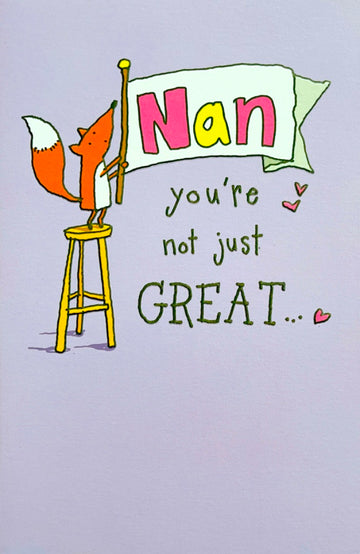Nan Your'e Not Just Great NANTASTIC Happy Birthday Card - Cute Fox with Banner Art