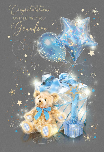 New Baby Grandson Birth Congratulations Luxury Gold Foiled Greeting Card