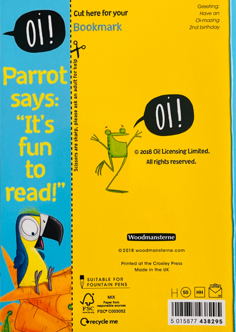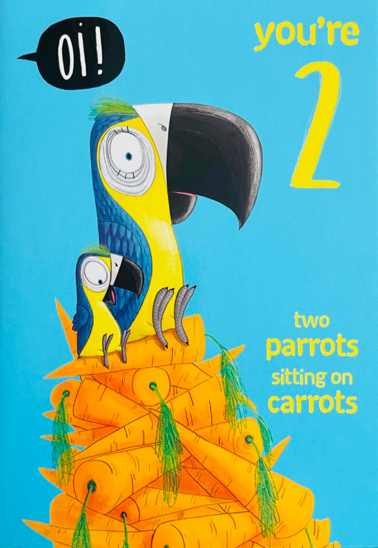 Oi You're 2 Two Parrots Sitting On Carrots 2nd Birthday Card with Bookmark