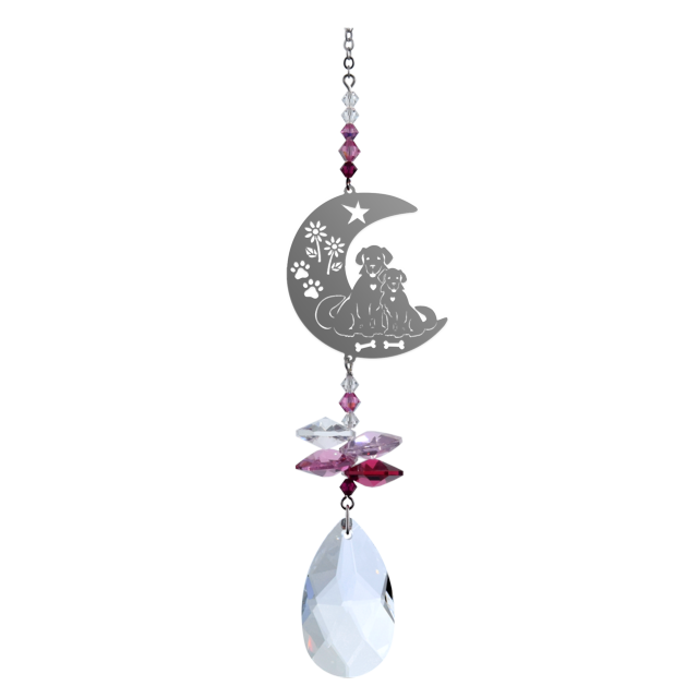 This adorable Puppes in love Crystal Fantasy has a mirror-finished motif suspended between a matching bead run and a crystal cascade in the Deep Rose colourway, completed with a brilliant clear cystal pendant for maximum rainbow-making effects. Handmade in the UK.