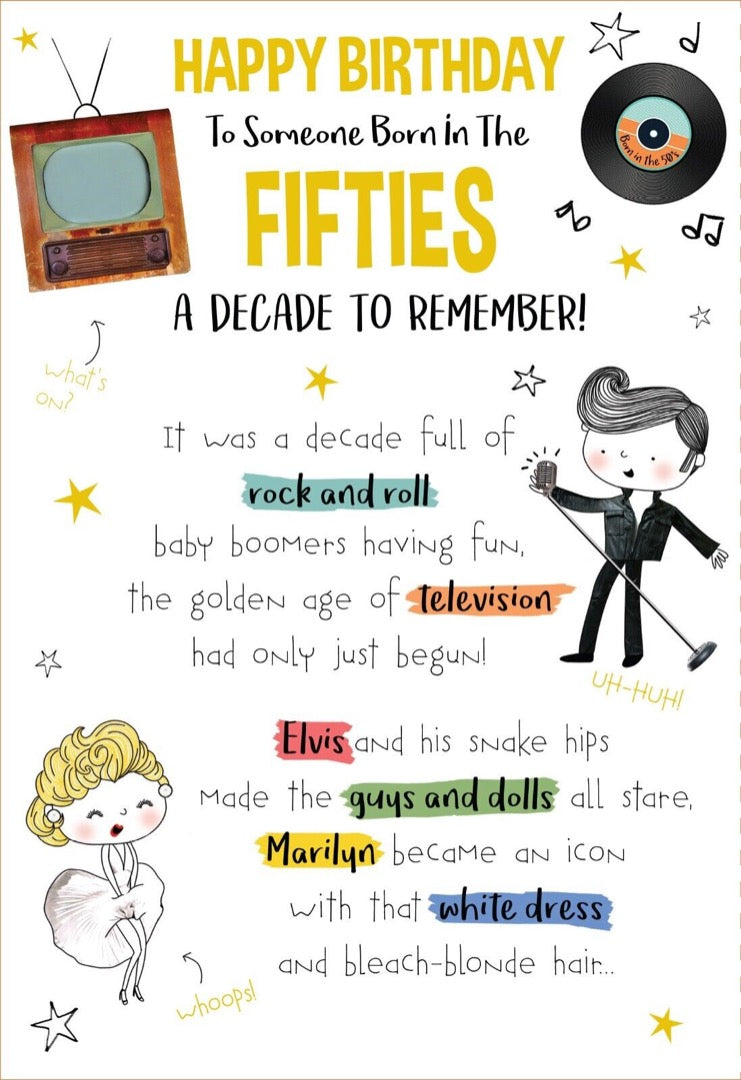 Someone Born in the FIFTIES 50's A Decade To Remember 1950-1959 Birthday Card