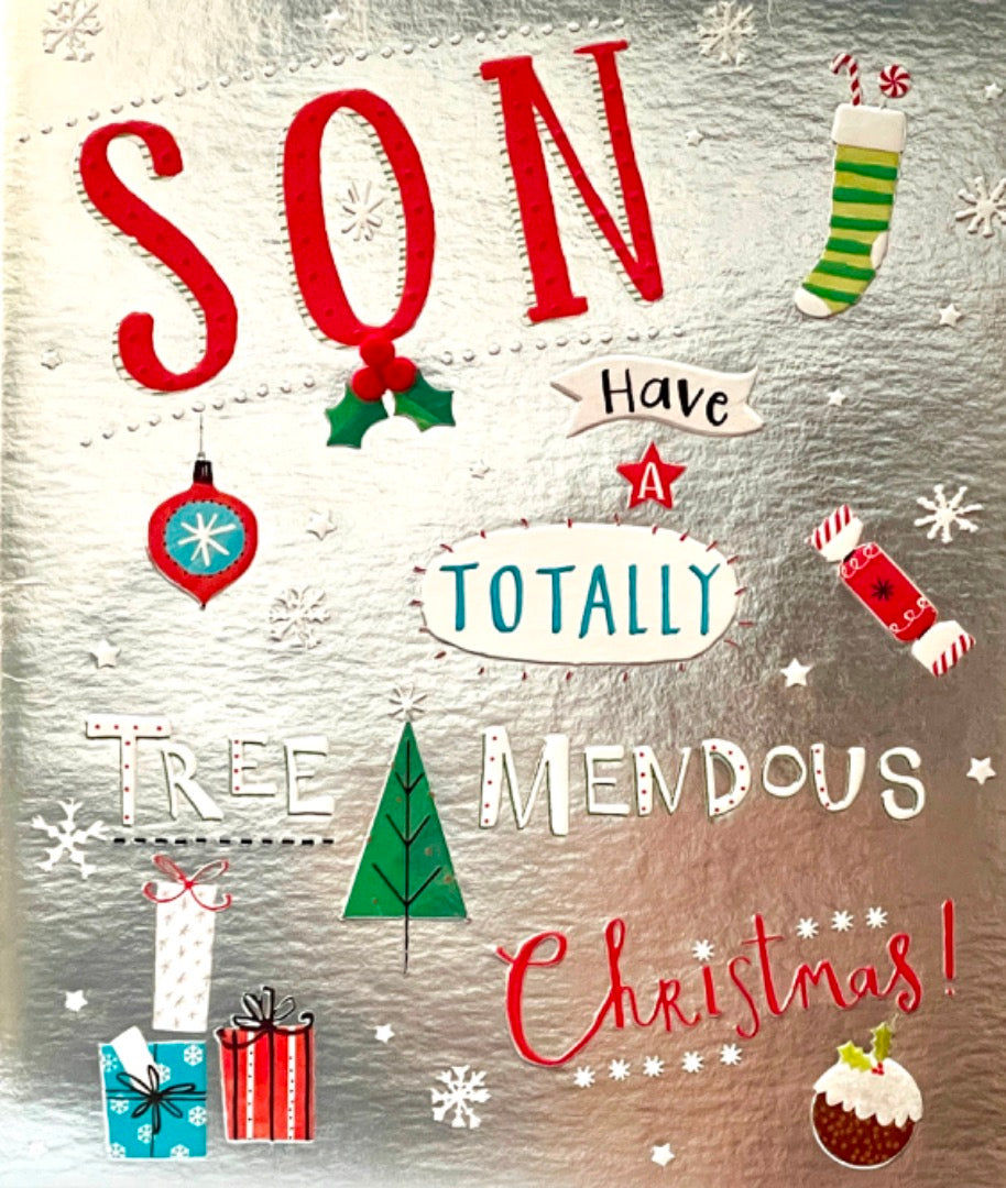 Son Have a Totally Tree Mendous Christmas Modern Card Gifts Stocking Cracker Pudding