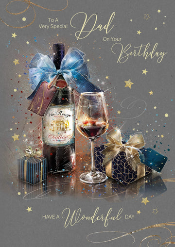 Special Dad ''Happy Birthday'' Greeting Card - From The Grayson Range - Vintage Wine - Gold Foil Flitter Finish