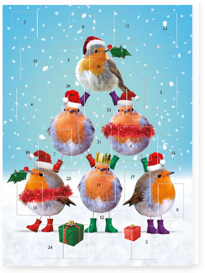 Stacked Festive Robins Pyramid Jolly Fun Christmas 24 Door Advent Calendar