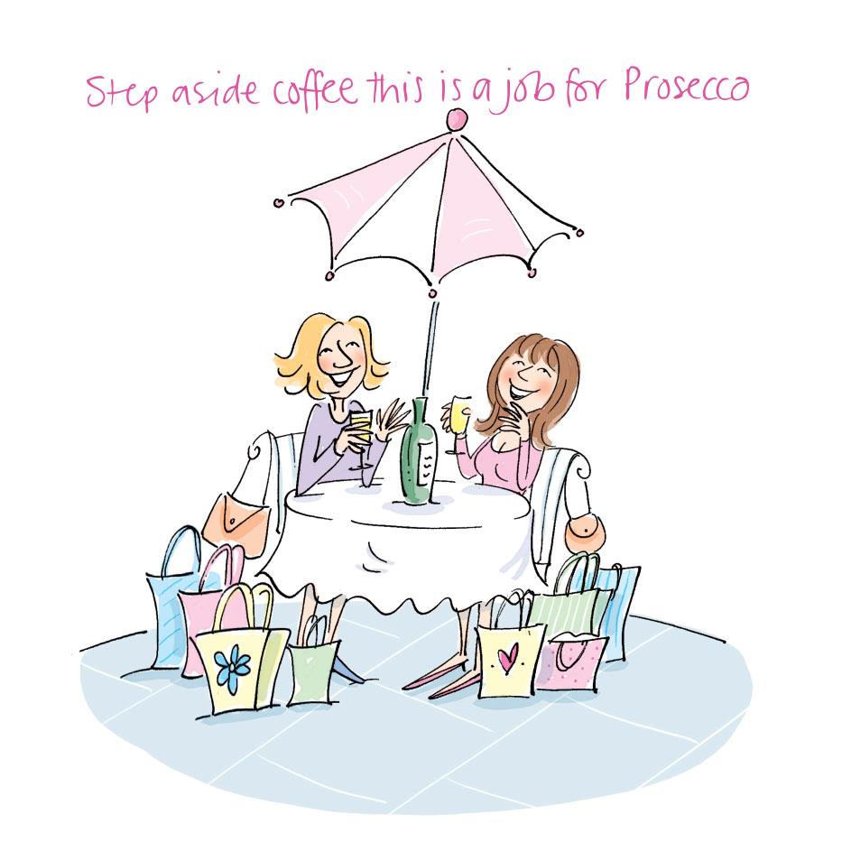 Step aside Coffee this is a Job for Prosecco! Friends Shopping Lunch Blank Greeting Card