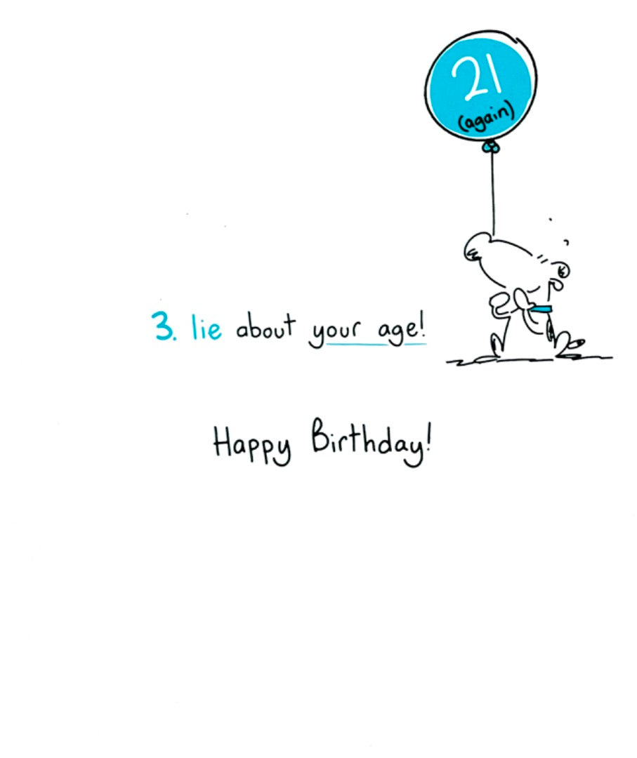 Message Inside: 3. lie about your age! Happy Birthday! (21 again)