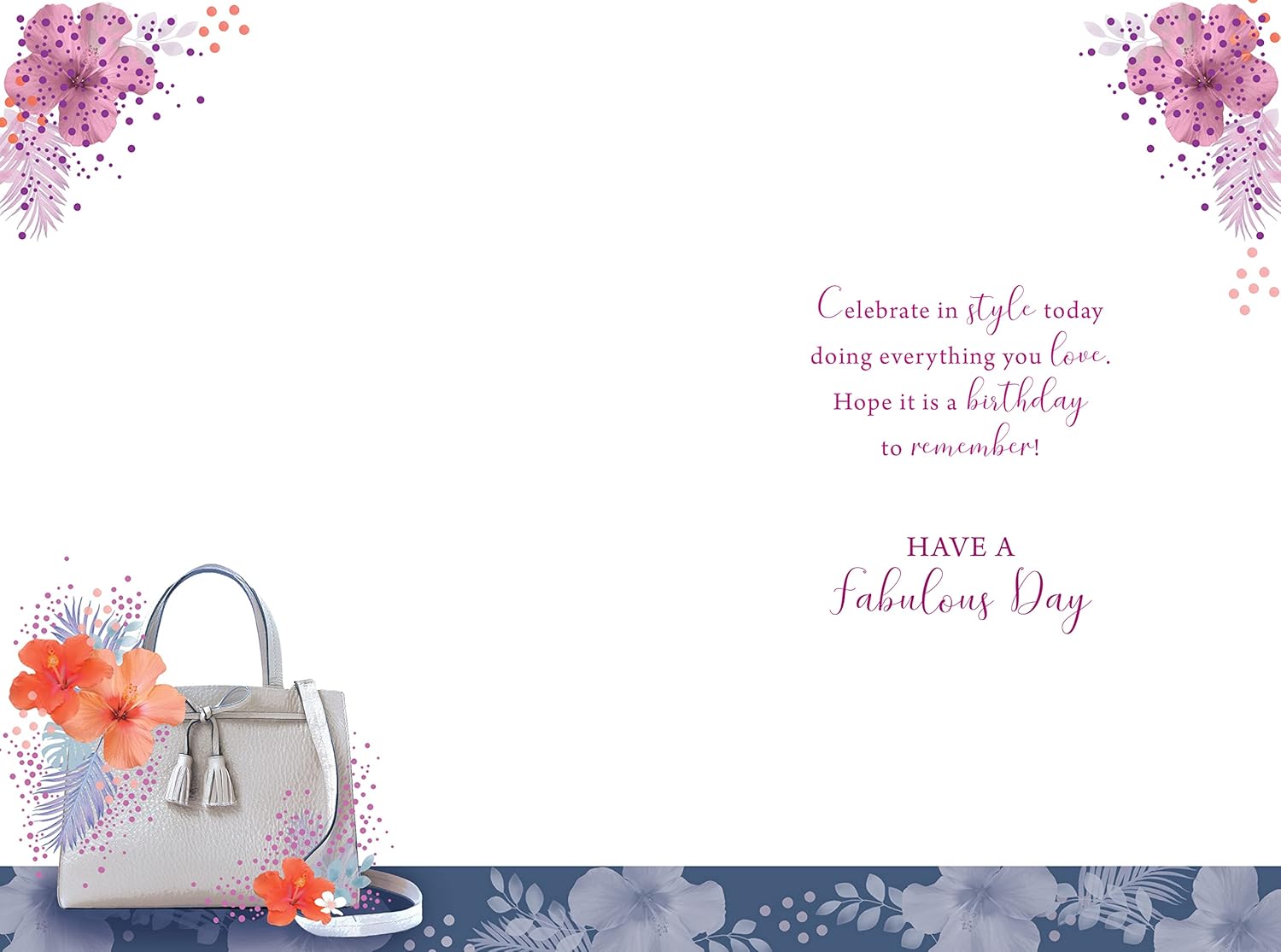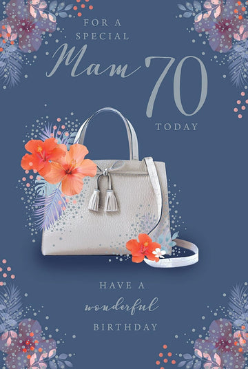 To A Special Mam 70 Today 70th Birthday Hibiscus Flowers Handbag Silver Foil Greeting Card
