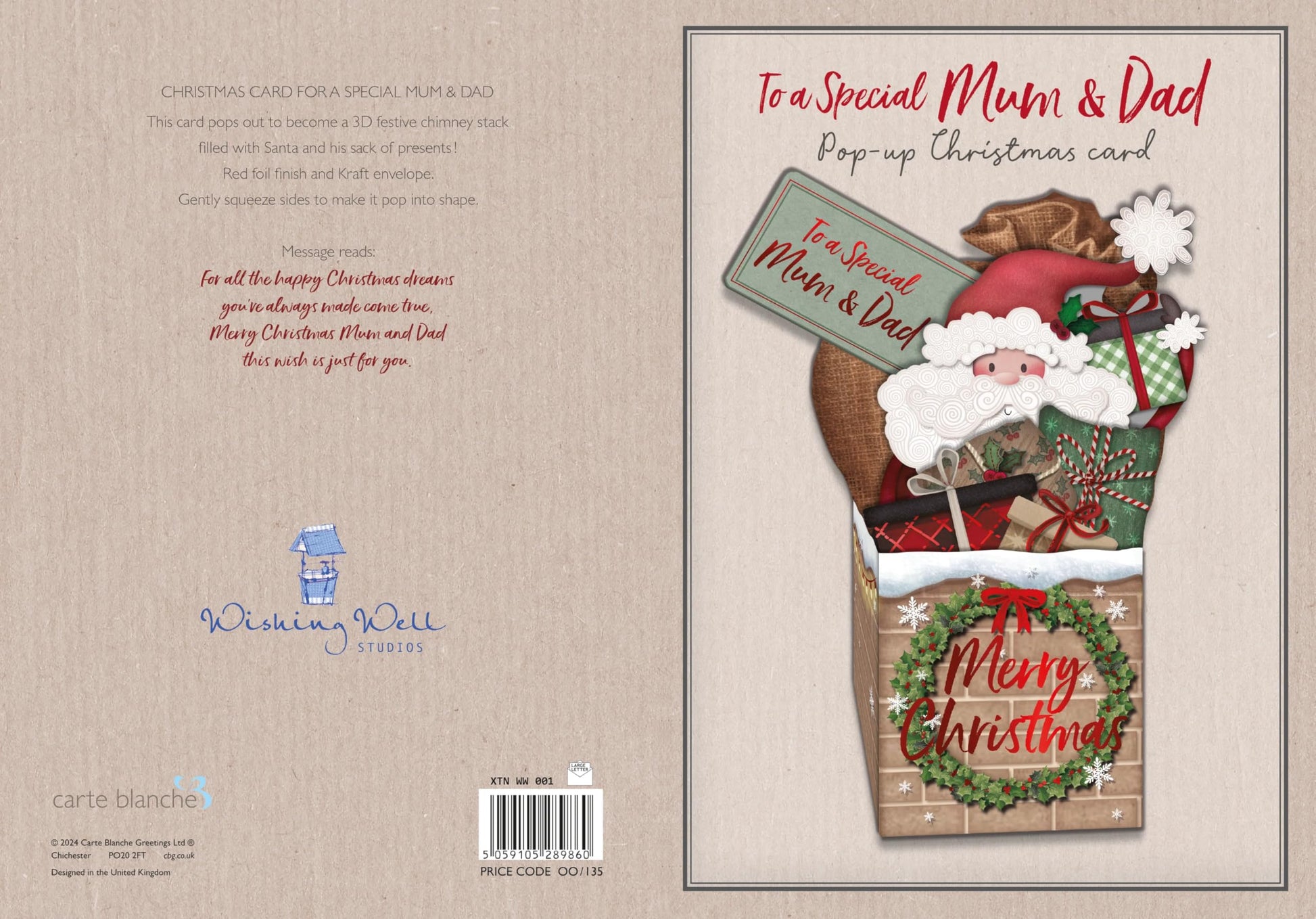 PREMIUM CHRISTMAS CARD: This luxury pop-up Christmas card in premium matt finish is perfect for sending heartfelt festive wishes to a very special Mum & Dad