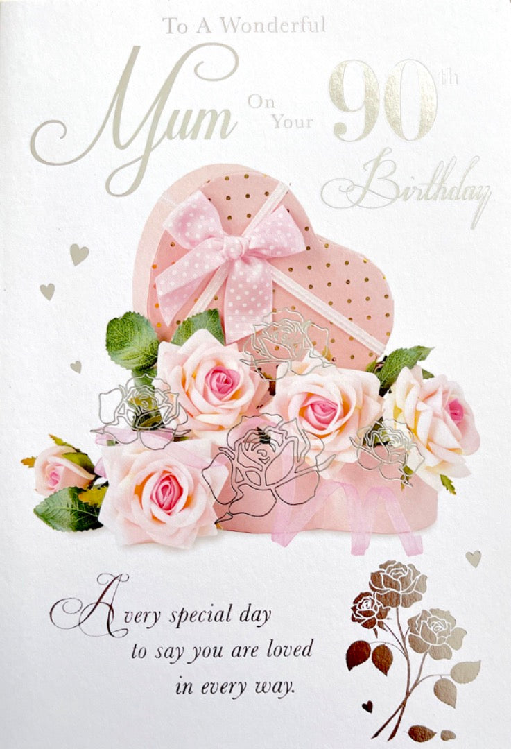 To A Wonderful Mum on Your 90th Birthday Card With Love Pink Roses