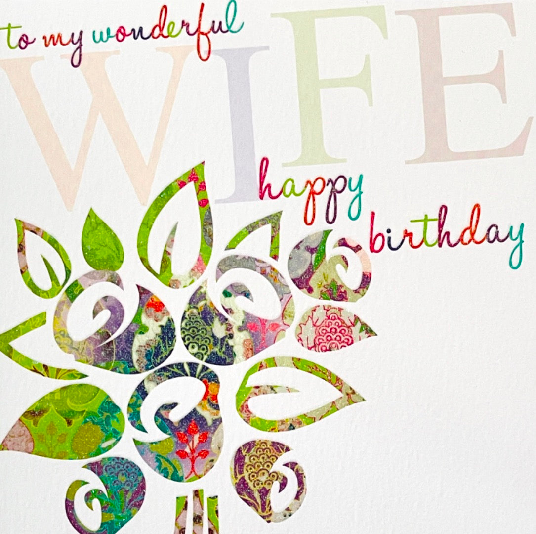 To My Wonderful Wife Happy Birthday Blank Card with Emboss Flitter Art Bouquet