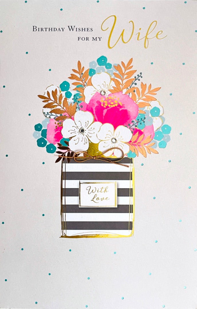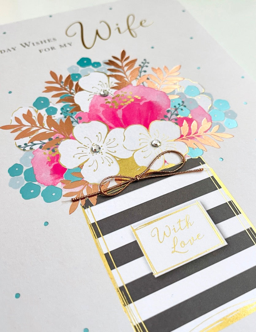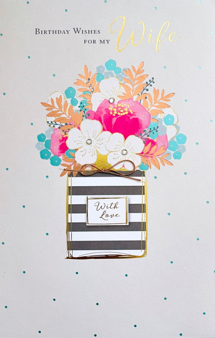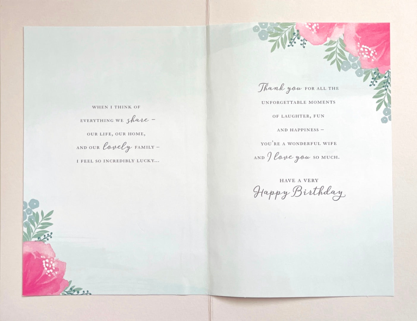 Wife with Love Birthday Card - Our Life, Home, Lovely Family - Modern Contemporary Floral Art