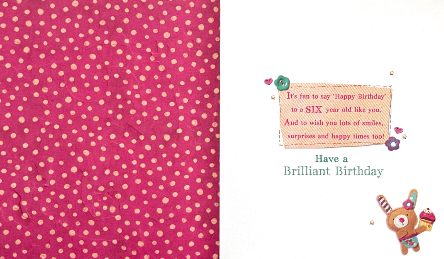Wow You're 6 Today 6th Brilliant Birthday Card Felt Craft Rabbit Cats and Cupcakes