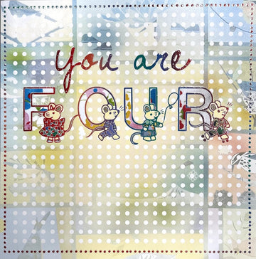 You Are FOUR 4rd Birthday Blank Card Cute Little Mice with Emboss Flitter Art - Age 4