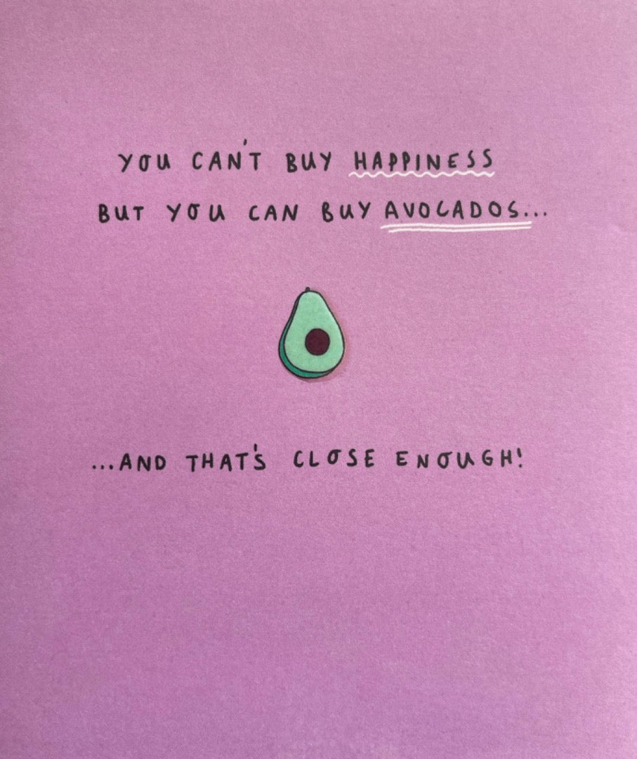 You Can't Buy Happiness - Buy Avocados Funny Blank/ Birthday Card for any Occasion - Avocado